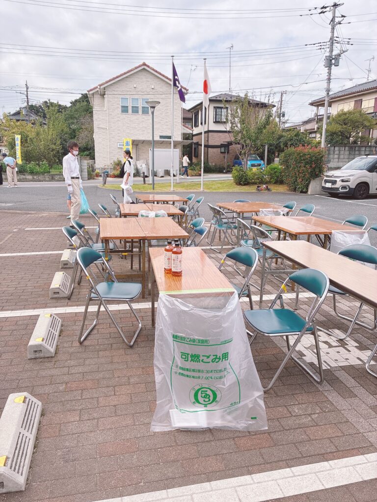 公民館敷地内の駐車スペースには、飲食できるスペースが用意されているので、その場で食べられますよ。