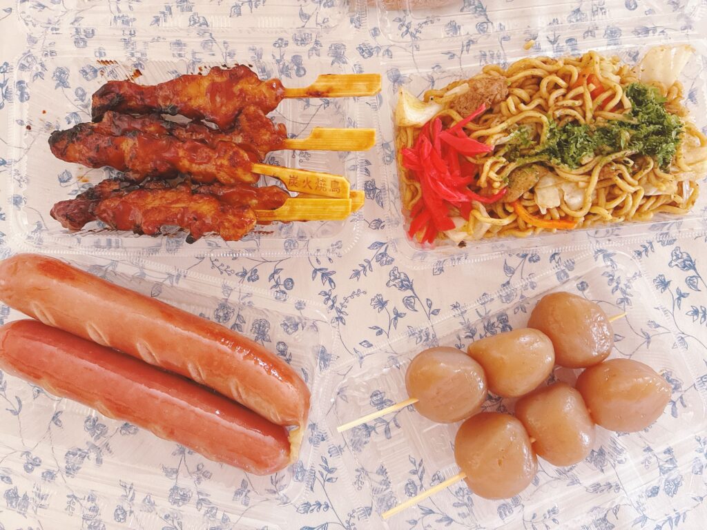 模擬店では、地元の皆さんが作ってくれる屋台ごはんが販売されています。